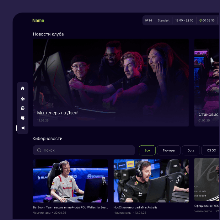 Отображение новостей киберспорта и клубной жизни